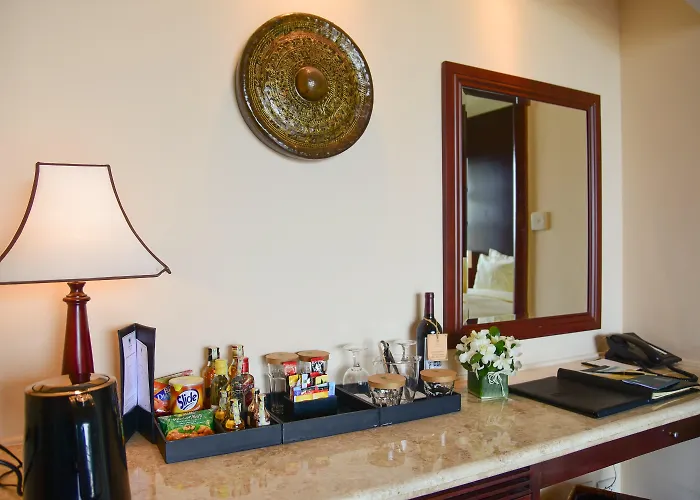 The soundproofed rooms at the luxury Furama Da Nang are fitted with a flat-screen TV with satellite channels, some of them feature sound-proofed windows. Separate bathrooms include nice touches such as a hairdryer and bath sheets. A kitchenette with an electric kettle, fridges, and a cooktop are available in an apartment.